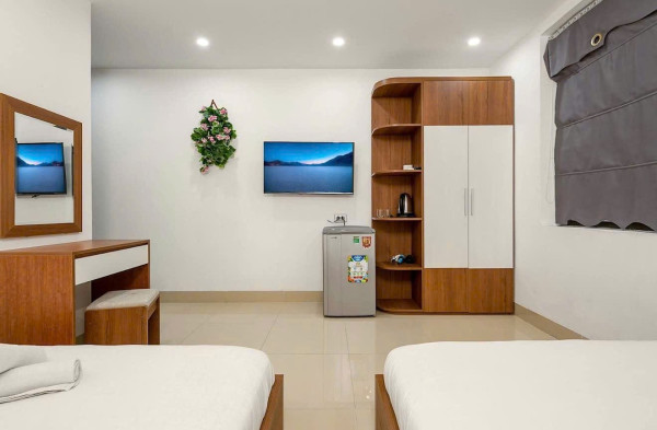 Thiết kế gồm 6 tầng và 1 tầng lửng, có 12 phòng, 4 phòng căn hộ, 8 phòng khách sạn. Đang cho thuê giá 40tr/tháng.