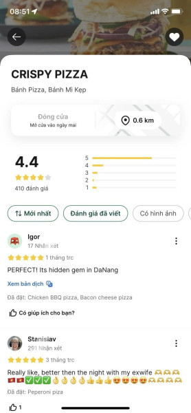 - Quán được khách du lịch đánh giá cao trên Grab, Google.