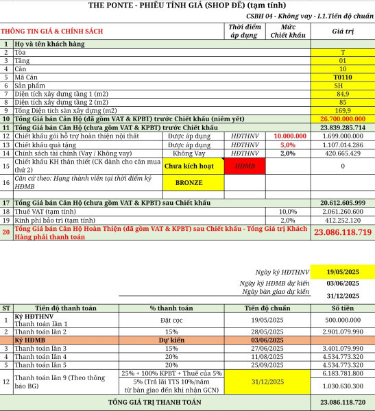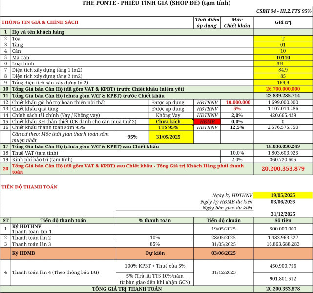 • Thanh toán sớm 95%: 20.200.353.878 VNĐ